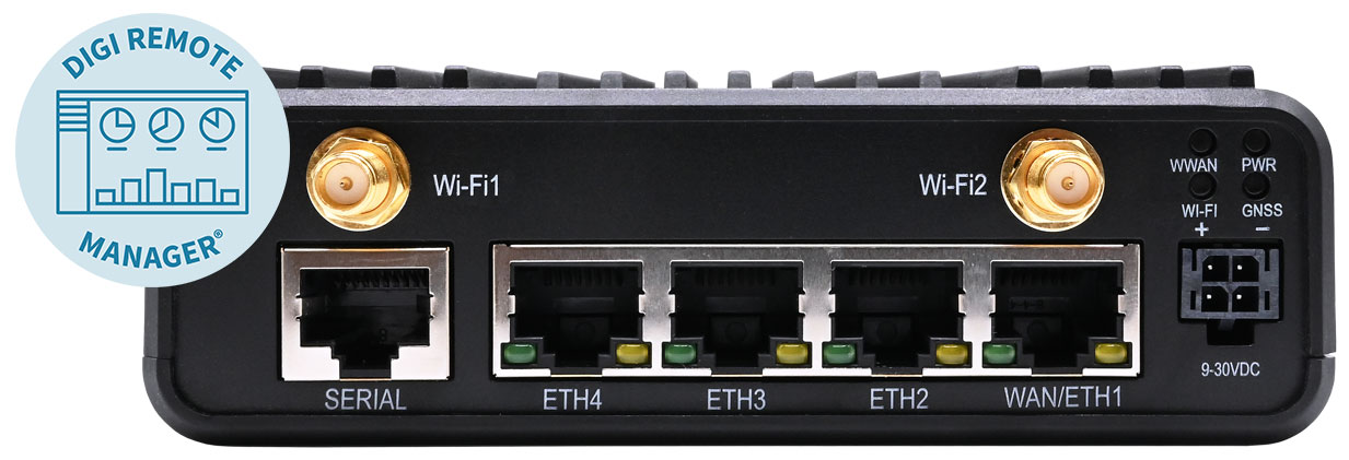- 坚固、安全且可靠—— 这款四端口工业级蜂窝IoT 无需额外添加交换机或PLC,从而降低了总体安装成本。它通过Digi Remote Manager 简化车队运营Digi Remote Manager 公用事业和零售领域实现部署标准化——同时完全不影响其温度等级、认证资质或产品使用寿命。