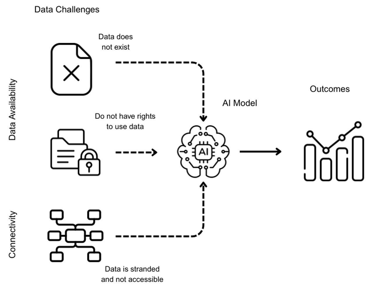 这项发现凸显了许多企业低估的根本性挑战:如何从正确来源获取正确数据,以支持人工智能驱动的系统和运营。该挑战主要体现在两个方面——数据可用性(数据是否存在?)和数据连接性(数据能否被访问和共享?)。若缺乏这一基础,人工智能项目将陷入停滞、成效不彰或无法实现规模化。