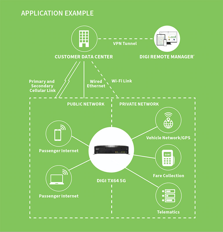 - Digi TX64- 双蜂窝 5G / LTE-Advanced Pro Cat 20、双 Wi-Fi、UDR、全球