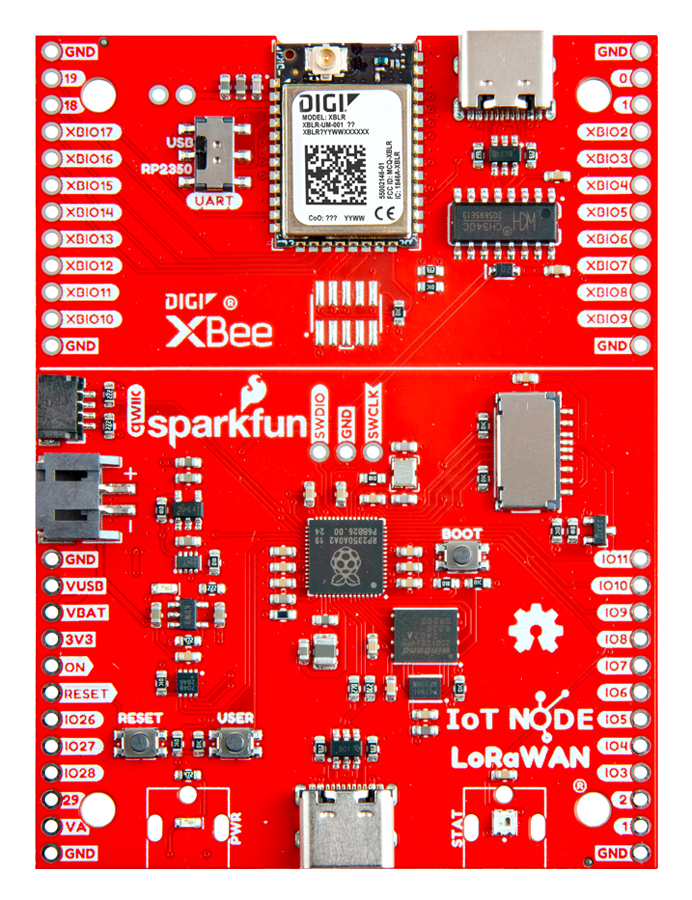 - 客户端屏蔽,带 LoRaWAN 模块、LED、数字输入和温度传感器